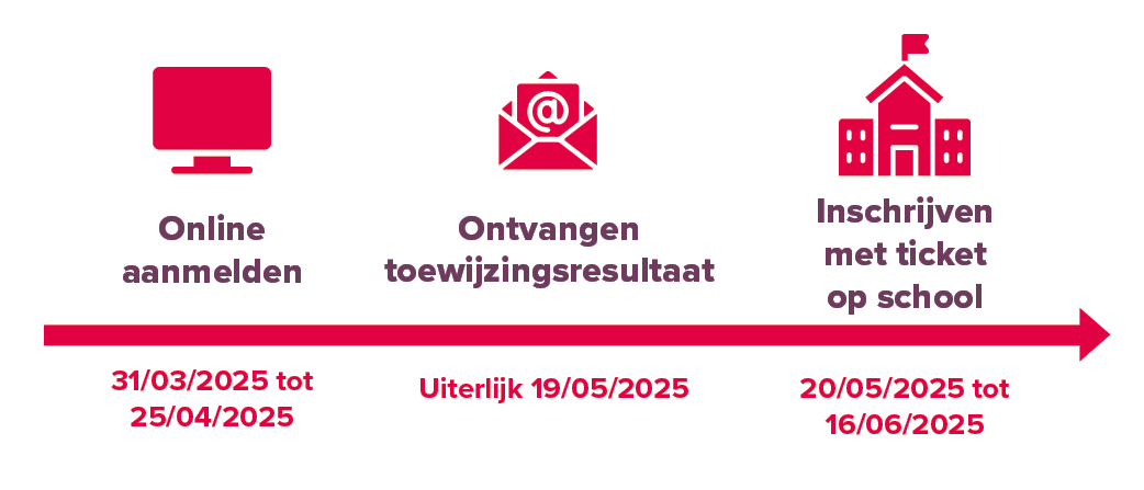 Je zal je eerst via een digitaal systeem moeten aanmelden. De inschrijving zelf zal later op de school gebeuren. Meld je aan voor dit systeem via deze link tussen maandag 31 maart 2025 tot en met vrijdag 25 april 2025.
